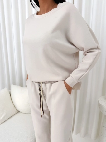 Kremowy Komplet Dresowy Bluza + Spodnie 14713-151-A