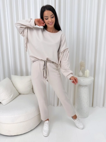 Beżowy Dresowy Komplet z Frędzlami 14714-500-A