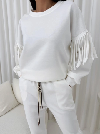 Kremowy Dresowy Komplet z Frędzlami 14714-500-B