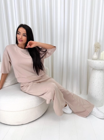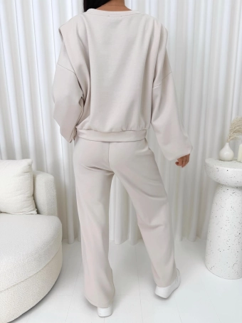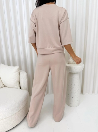 Beżowy Komplet Bluza + Spodnie Wide Leg  14212-288-A Beżowy Komplet Bluza + Spodnie Wide Leg 14212-288-A