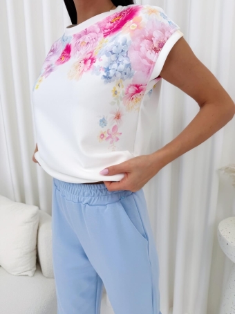 Błękitny Dwuczęściowy Komplet w Kwiaty 14681-198-A