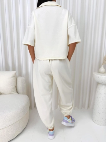 Pudrowy Komplet Rozpinana Bluza + Spodnie 14758-352-D