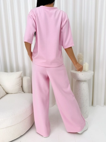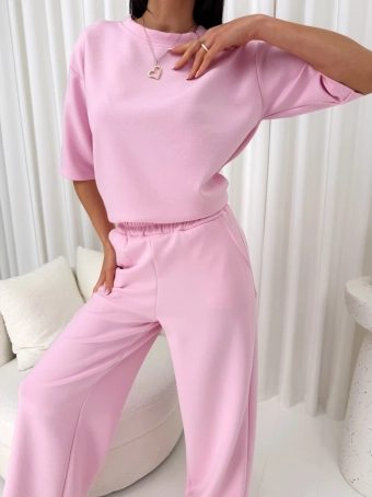 Różowy Komplet Bluza + Spodnie Wide Leg 14212-288-I