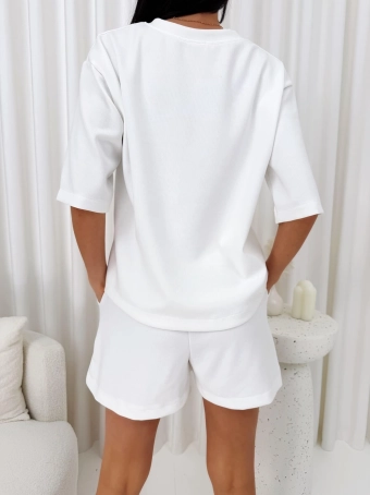 Kremowy Prążkowany Komplet Bluzka + Spodenki 14887-117-C