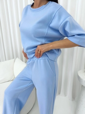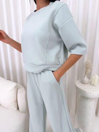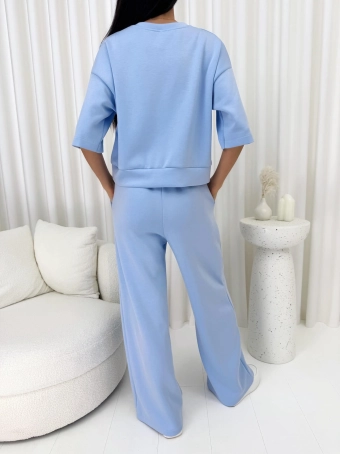 Błękitny Komplet Bluzka + Szerokie Spodnie 14888-49-A