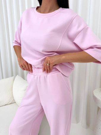 Pudrowy Komplet Bluza + Spodnie 12670-184-K