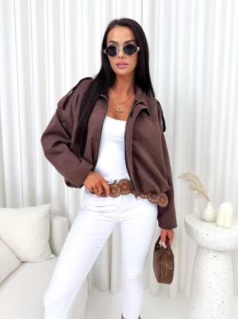 Czekoladowa Zamszowa Krótka Kurteczka 14818-296-A