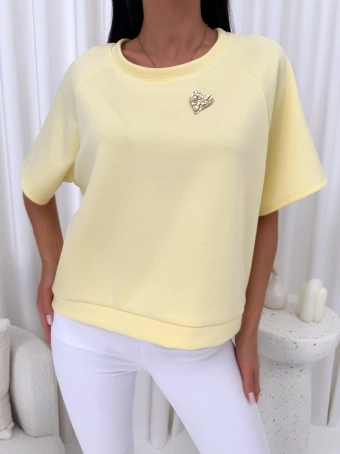 Żółta Masełkowa Bluzka z Broszką 14847-360-C