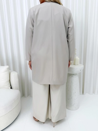Beżowy Długi Żakiet z Zapięciem  14674-169-A Beżowy Długi Żakiet z Zapięciem 14674-169-A