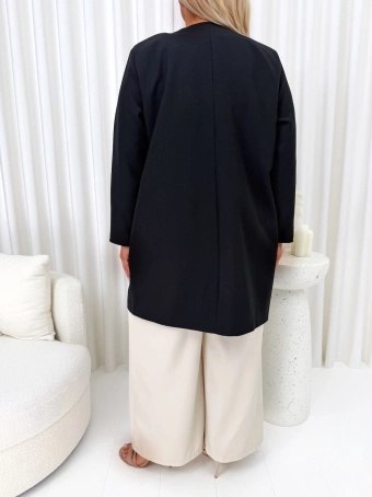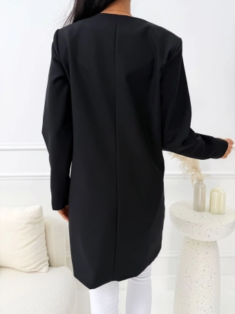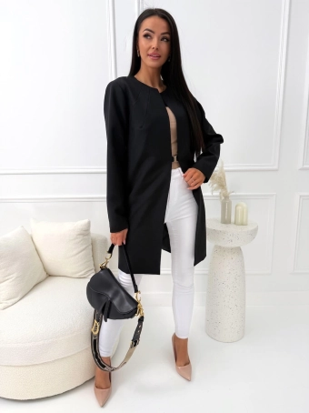 Czarny Długi Żakiet z Zapięciem 14674-169-B Czarny Długi Żakiet z Zapięciem 14674-169-B
