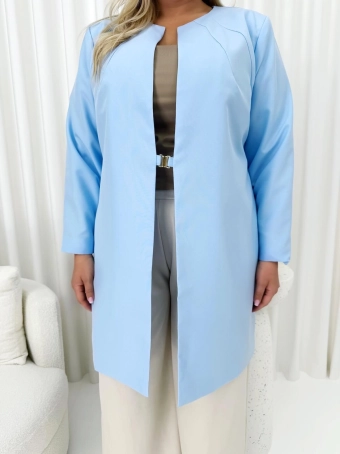 Błękitny Długi Żakiet z Zapięciem  14674-169-E Błękitny Długi Żakiet z Zapięciem 14674-169-E
