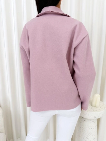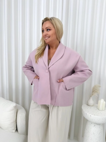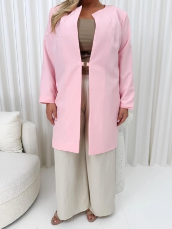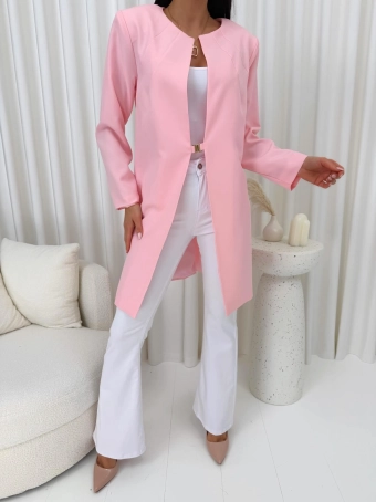 Pudrowy Długi Żakiet z Zapięciem  14674-169-G Pudrowy Długi Żakiet z Zapięciem 14674-169-G