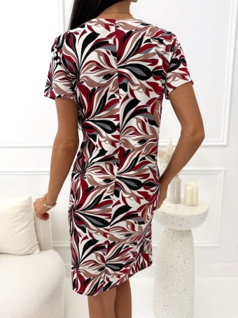 Kremowo-Brązowa Sukienka w Liście z Dekoltem V 14776-528-B