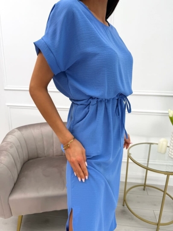 Niebieska Jeansowa Sukienka z Paskiem 13636-514-B