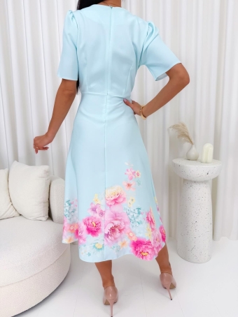 Miętowa Rozkloszowana Sukienka z Motywem Kwiatowym 14805-203-C