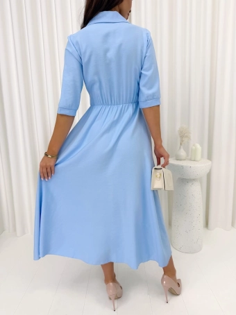 Błękitna Sukienka z Kołnierzykiem i Wiązaniem 14930-14-A