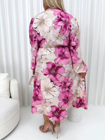 Różowa Sukienka Plus Size z Motywem Kwiatowym 14791-426-B