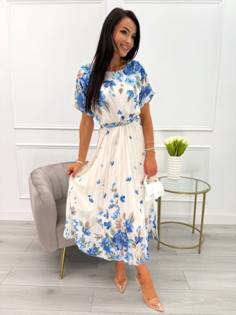 Pudrowo-Kremowa Plisowana Sukienka w Kwiaty 13604-211-C