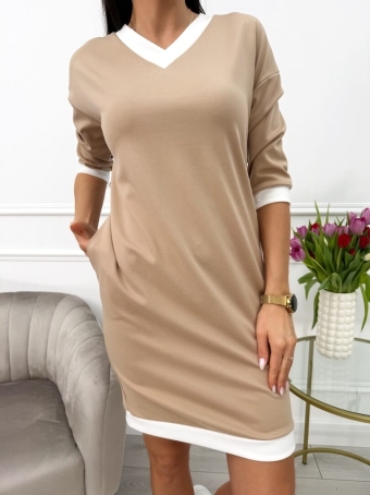 Cappuccino Sukienka z Kieszeniami 13707-103-O