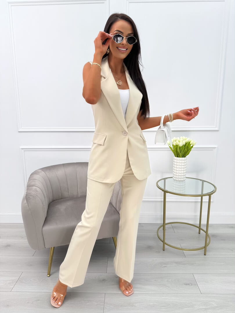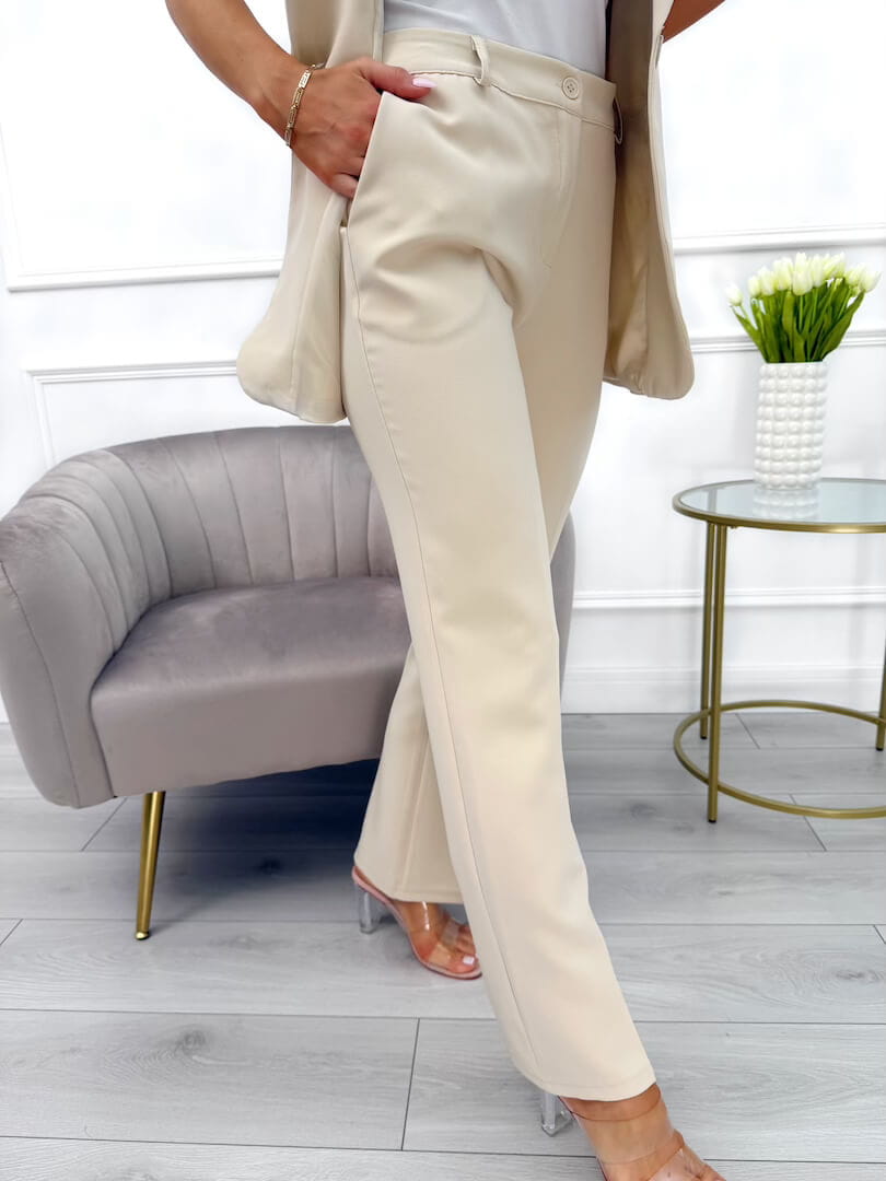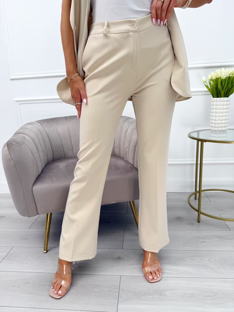 Beżowe Eleganckie Spodnie w Kant 14667-424-A