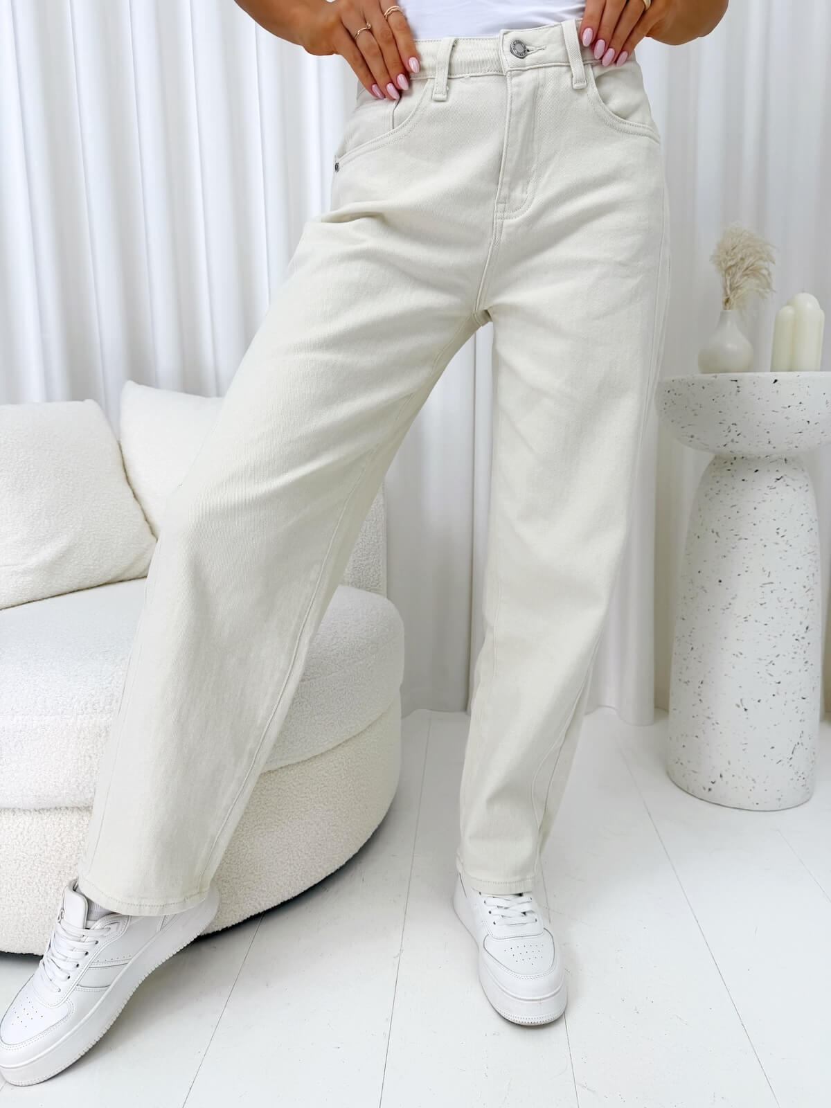 Stylowe beżowe jeansy mom fit