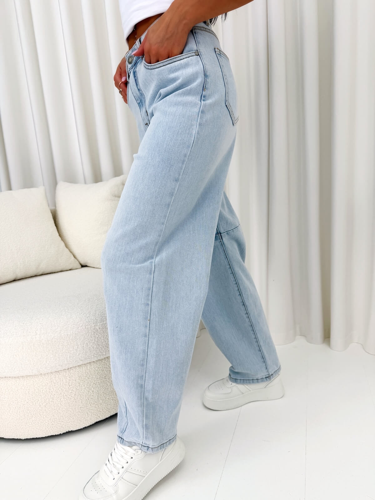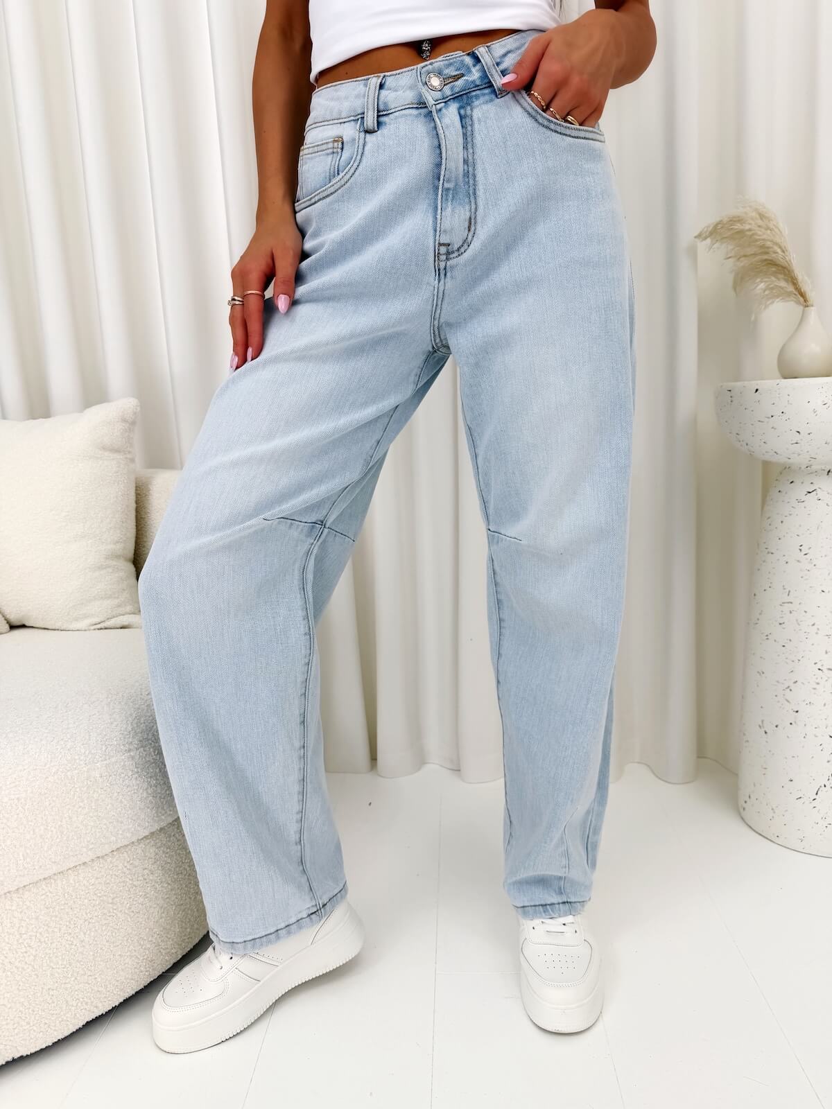 To model, który świetnie sprawdzi się u kobiet lubiących połączenie wygody i modnego wyglądu. Szerokie nogawki zapewniają swobodę ruchów i nadają stylizacji nowoczesnego charakteru, a lekko elastyczny jeans wpływa na komfort użytkowania przez cały dzień. Kieszonki z przodu i z tyłu zwiększają funkcjonalność spodni, a klasyczne zapięcie na suwak i guzik podkreśla ponadczasowy fason. Błękitny kolor sprawia, że model jest bardzo uniwersalny i łatwy do stylizowania, dlatego z powodzeniem połączysz go ze sneakersami, sandałami, botkami czy bardziej eleganckim obuwiem. To świetny wybór dla kobiet, które szukają jeansów wygodnych, kobiecych i zgodnych z aktualnymi trendami.