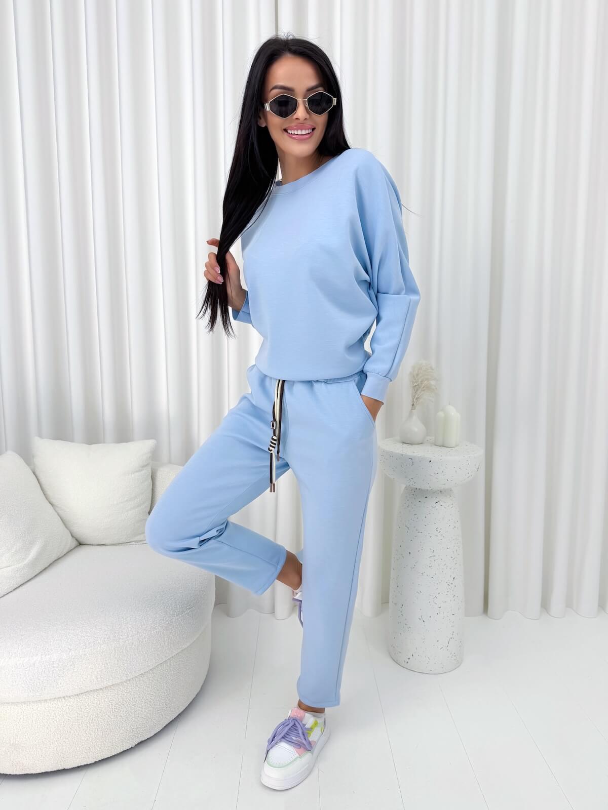Błękitny Komplet Dresowy Bluza + Spodnie