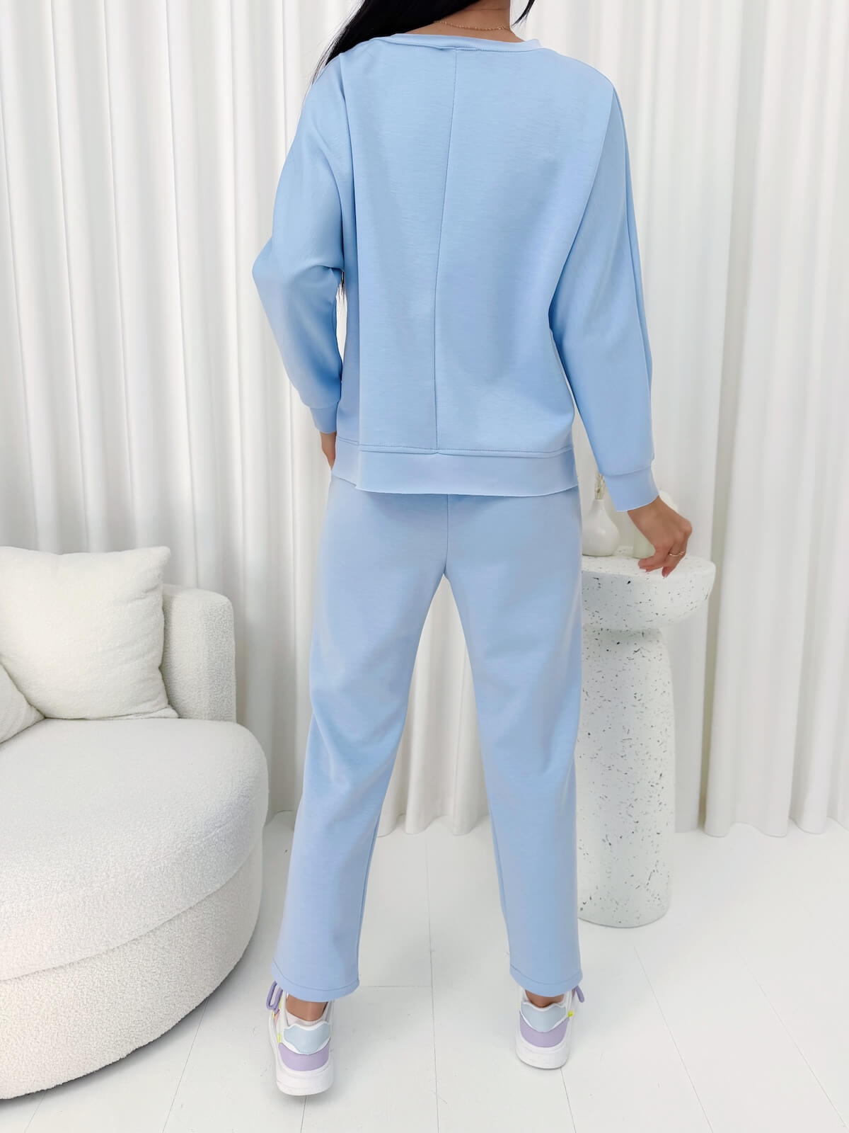 Klasyczny komplet dresowy w jednolitym kolorze to uniwersalna propozycja, która łączy wygodę z dopracowanym, kobiecym stylem. Luźna bluza z długimi rękawami swobodnie układa się na sylwetce, zapewniając komfort noszenia i lekkość formy. Spodnie z elastyczną gumką w pasie oraz wiązaniem umożliwiają idealne dopasowanie, a praktyczne kieszonki podnoszą funkcjonalność zestawu. Lekko zwężane nogawki nadają całości nowoczesnego charakteru i subtelnie podkreślają proporcje. Przyjemny w dotyku materiał sprawia, że komplet doskonale sprawdza się na co dzień, podczas spacerów, wyjazdów czy w chwilach relaksu, kiedy liczy się komfort w estetycznym wydaniu.