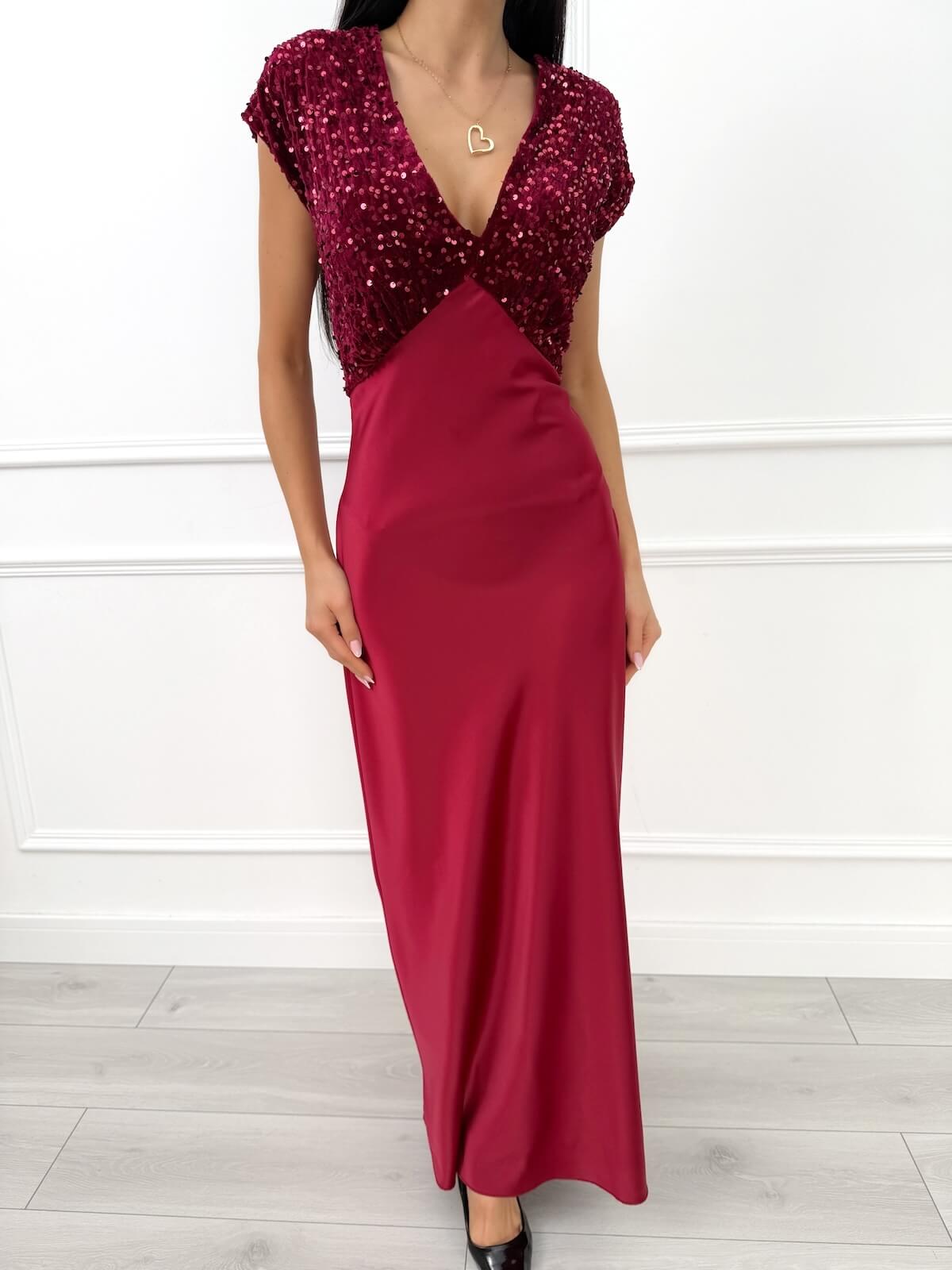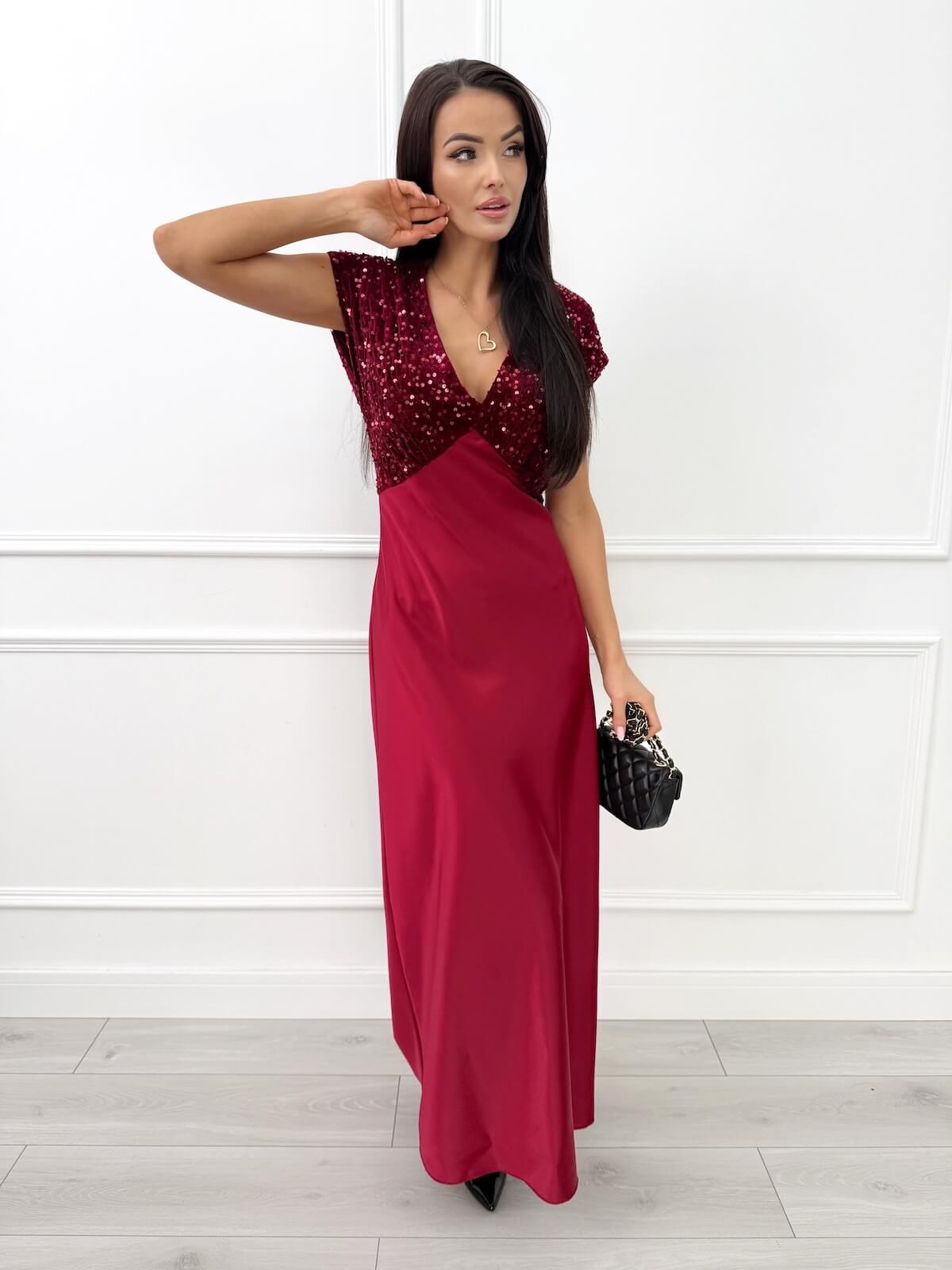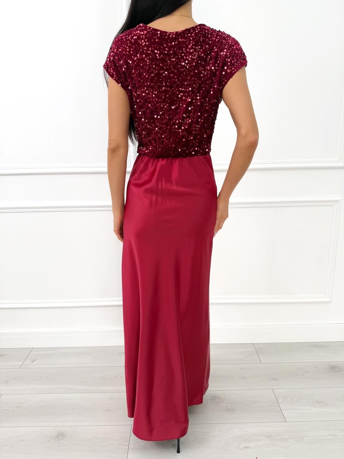 Bordowa Sukienka Maxi z Cekinową Górą 14514-136-A