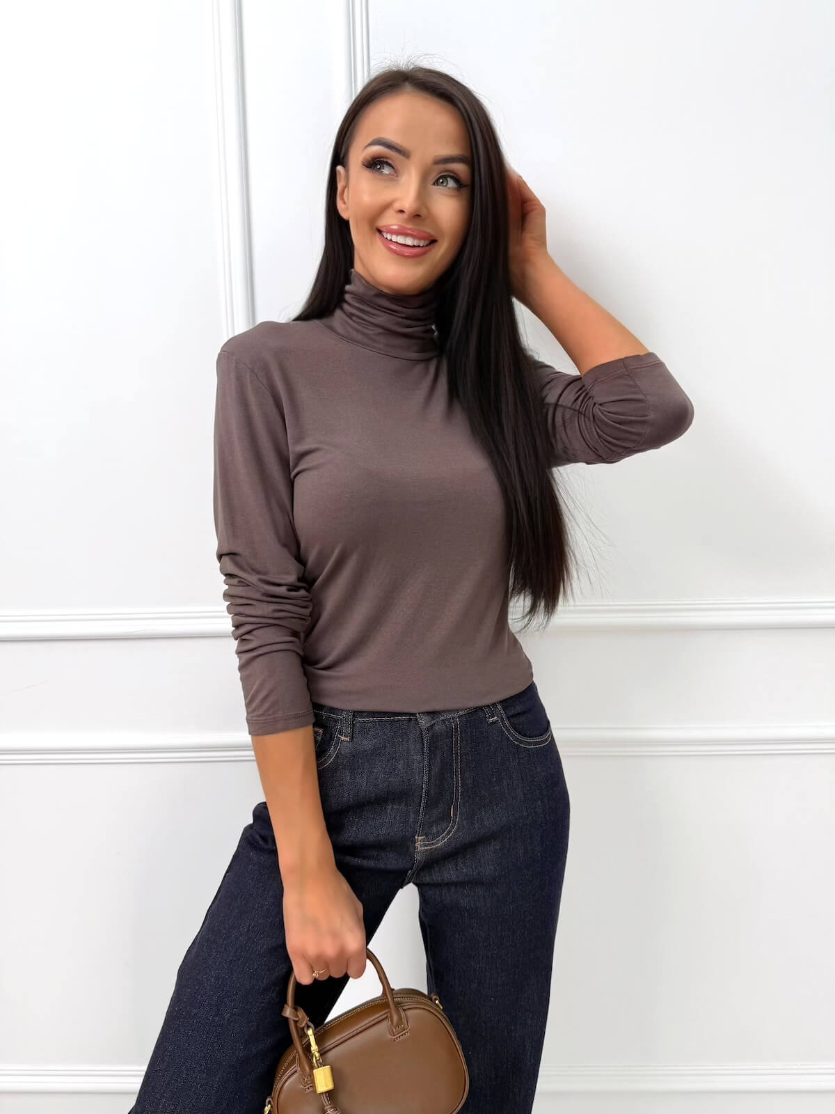 Brązowa Bluzka z Golfem