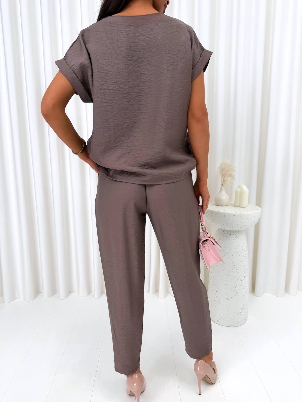 Brązowy dwuczęściowy wiskozowy komplet