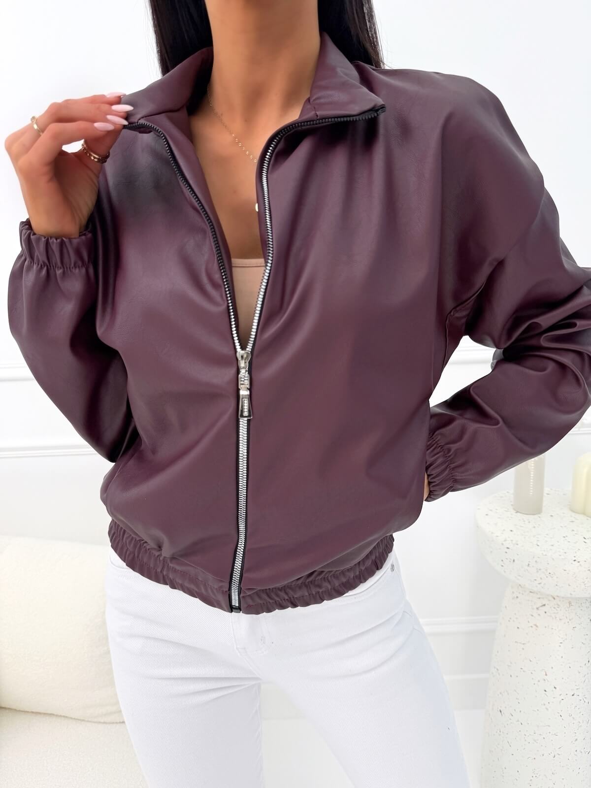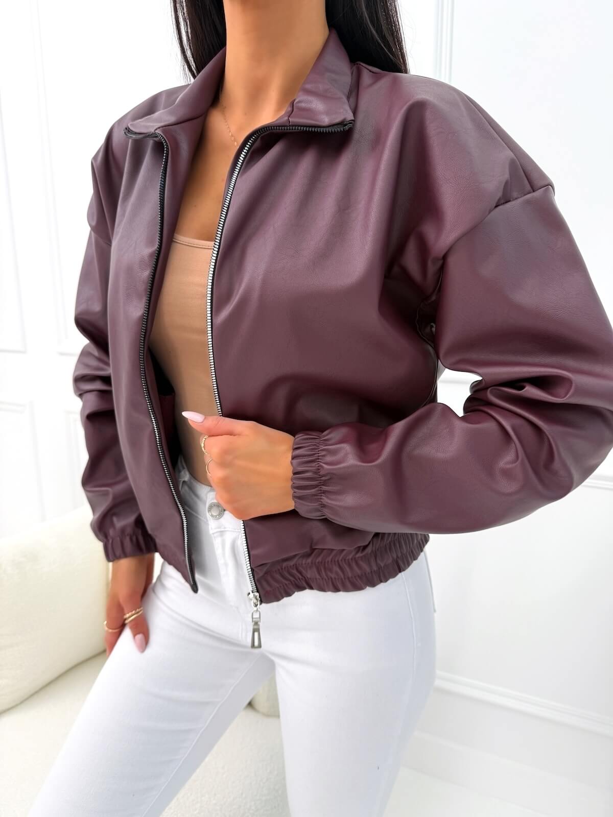 Burgundowa Bomberka z Eko Skóry