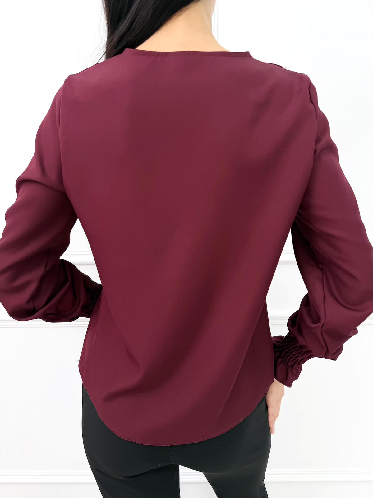 Burgundowa Klasyczna Bluzka z Gumką 14519-310-B