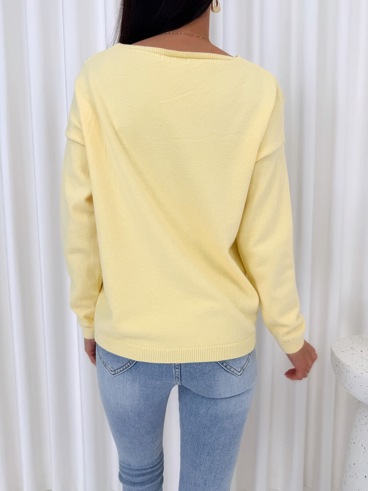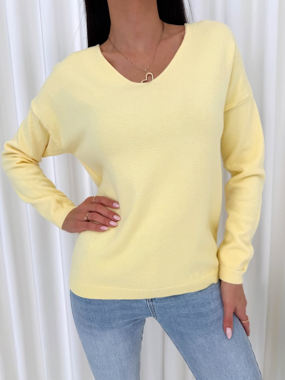 Cytrynowy Sweterek z Dekoltem w Serek
