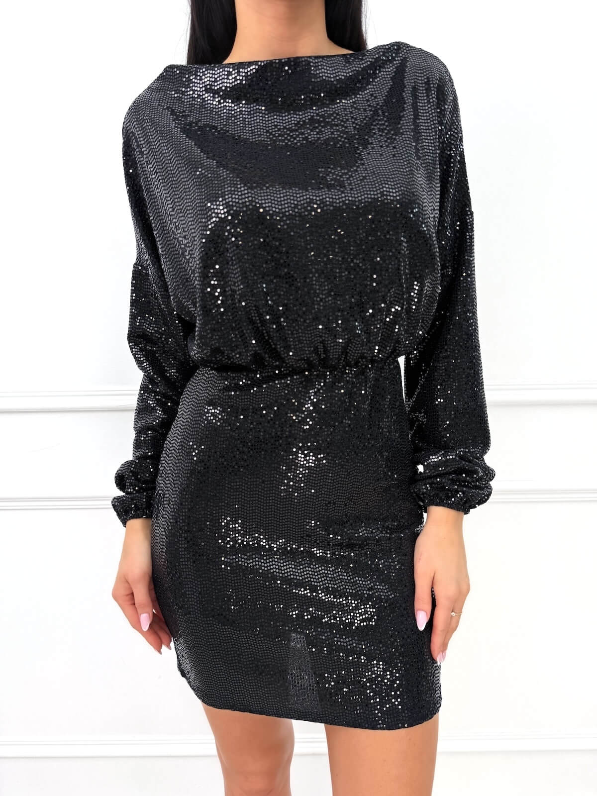 Ta wyjątkowa sukienka w jednolitym kolorze zachwyca eleganckim połyskiem cekinów, tworząc efektowny i kobiecy look. Dekolt typu łódka subtelnie podkreśla linię ramion, a długie rękawy zakończone gumeczką dodają lekkości i komfortu. Elastyczna talia pięknie zaznacza sylwetkę, nadając całości harmonijnych proporcji. To prawdziwy hit sezonu – idealna propozycja na świąteczne przyjęcia, Sylwestra czy wieczorne uroczystości, gdy liczy się blask, styl i elegancja.