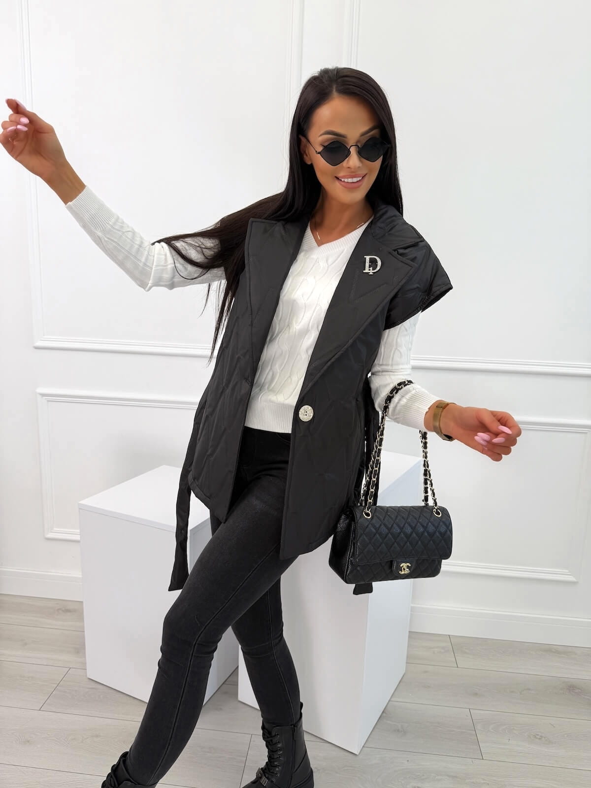 Czarna Kamizelka z Ozdobną Broszką 14201-108-A