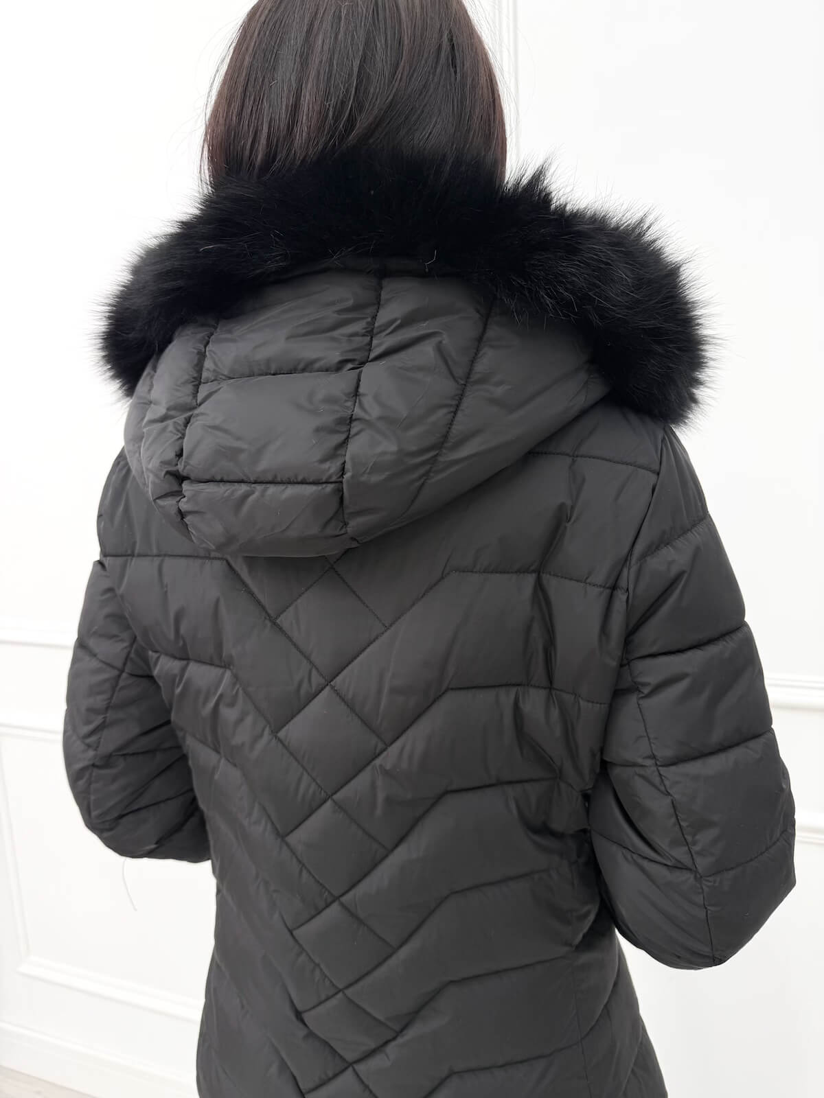 Czarna Pikowana Kurtka z Futerkiem przy Kapturze 14381-55-C