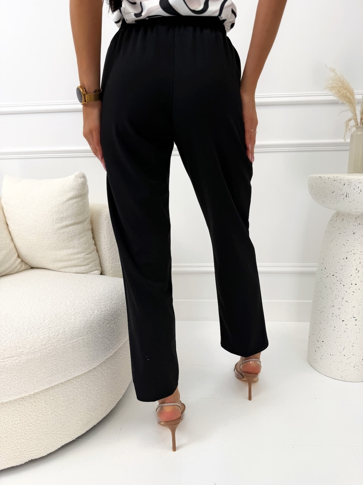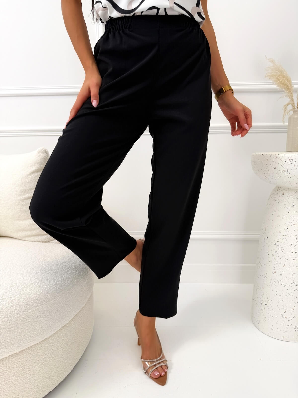 Czarne Spodnie z Gumką w Pasie 14641-123-A