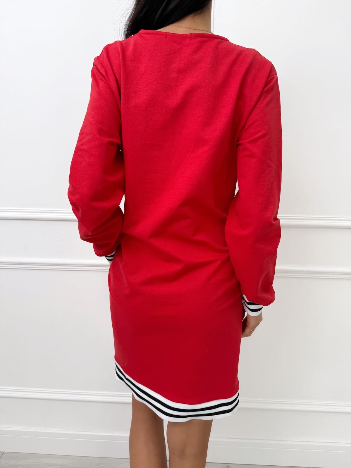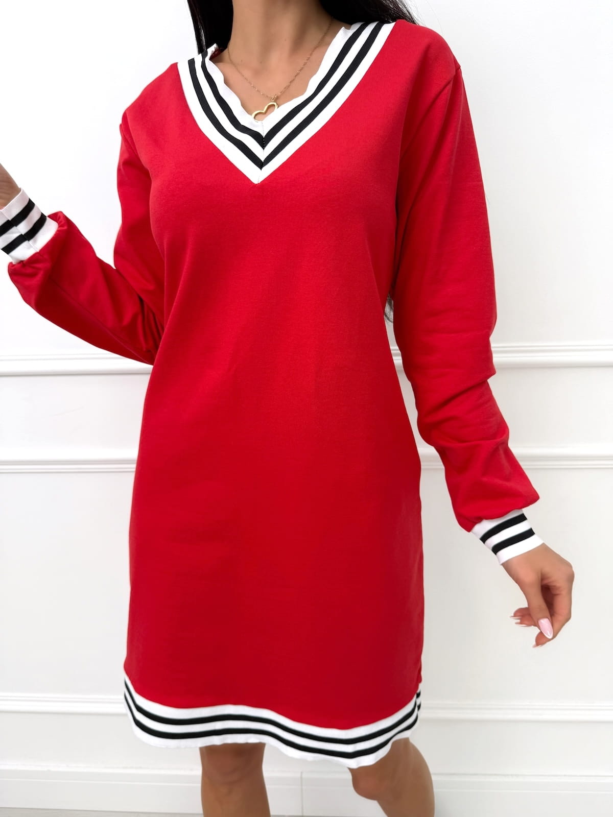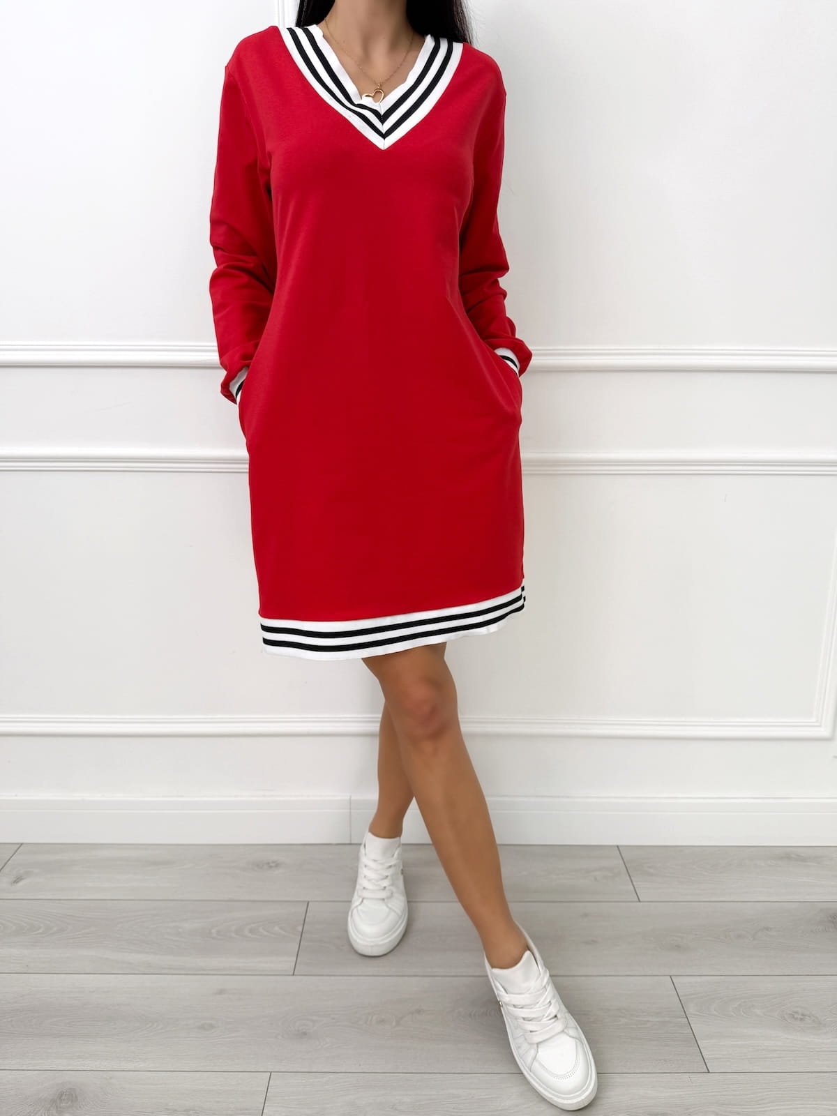 Czerwona Bawełniana Sukienka z Dekoltem V