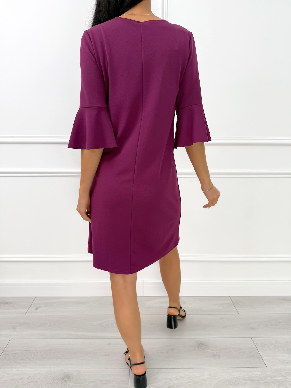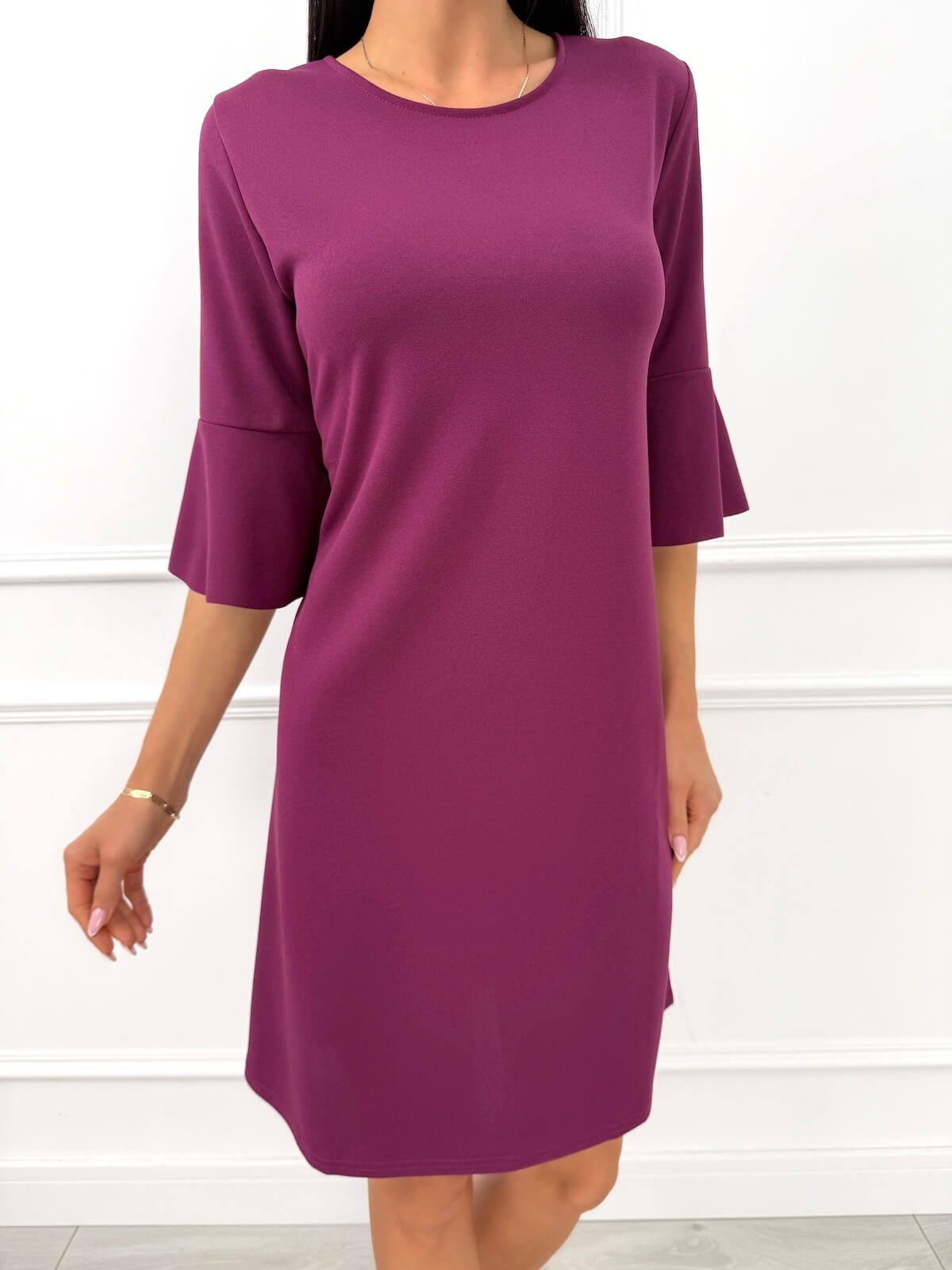 Fioletowa Elegancka Sukienka z Rozkloszowanym Rękawem 14250-297-C