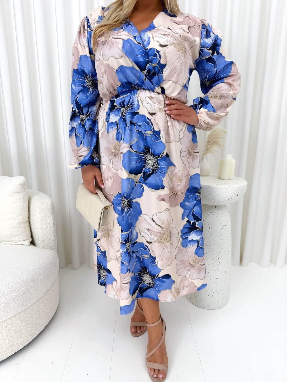Fioletowa Sukienka Plus Size z Motywem Kwiatowym kobieca i wygodna