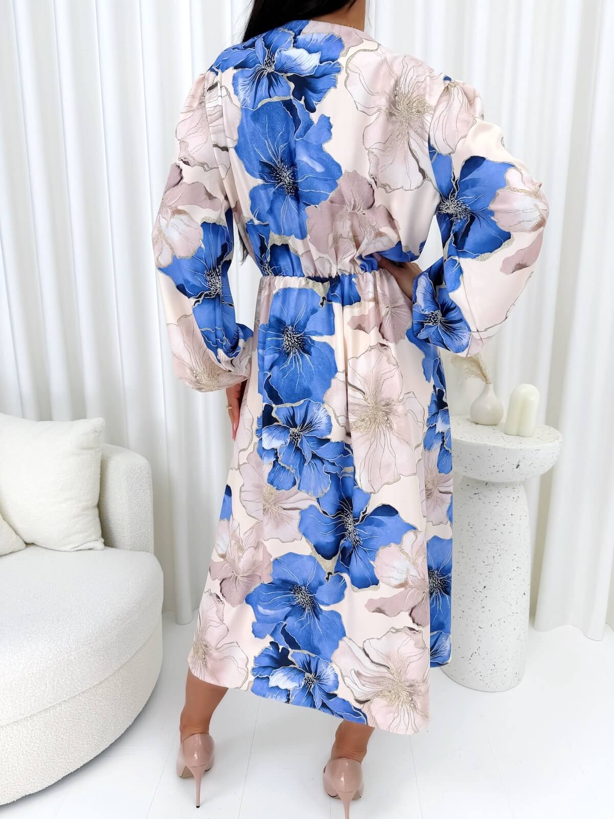 To model, który doskonale odnajdzie się w garderobie kobiet szukających sukienki efektownej, a jednocześnie wygodnej w noszeniu. Kopertowy dekolt wysmukla optycznie górną część sylwetki, a gumeczka pod biustem pozwala lepiej dopasować fason i podkreślić kobiece kształty. Rozkloszowany krój pięknie pracuje w ruchu, zapewnia swobodę i nadaje stylizacji lekkości. Długie rękawy zakończone gumeczką są praktyczne i estetyczne, a długość midi dodaje całości klasy. To polska propozycja dla kobiet, które chcą czuć się komfortowo i wyglądać stylowo w każdej sytuacji.