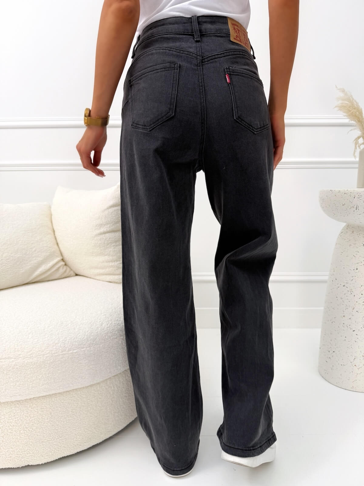 Jeansy wide leg z wysokim stanem to modny wybór, który pięknie wydłuża nogi i nadaje sylwetce lekkich, eleganckich proporcji. Wysoki stan pozwala wygodnie dopasować spodnie w talii i świetnie wygląda zarówno z krótkim topem, jak i z koszulą. Klasyczne zapięcie na guzik i zamek zapewnia estetyczne wykończenie, a kieszonki z przodu i z tyłu dodają praktyczności na co dzień. To idealna baza do wielu stylizacji: ze sneakersami stworzy nowoczesny, miejski look, a z botkami lub szpilkami z łatwością przejdzie w bardziej elegancki zestaw.