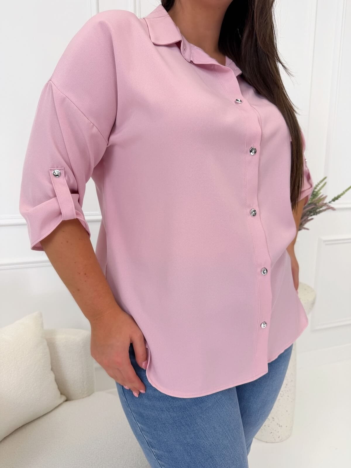 Pudrowa Koszula Damska Plus Size