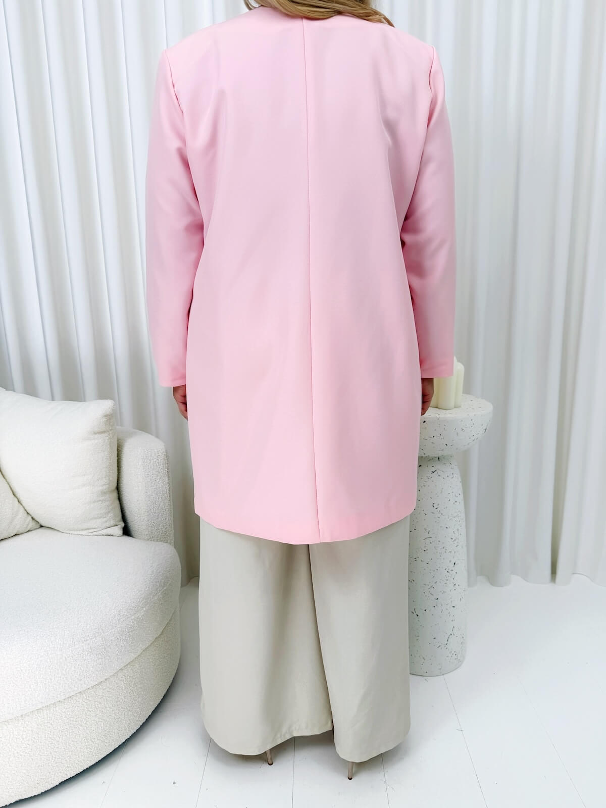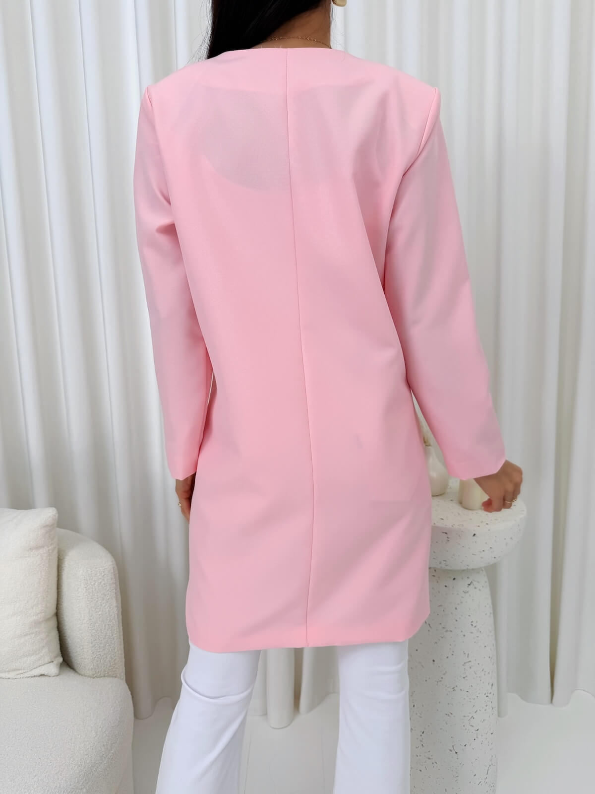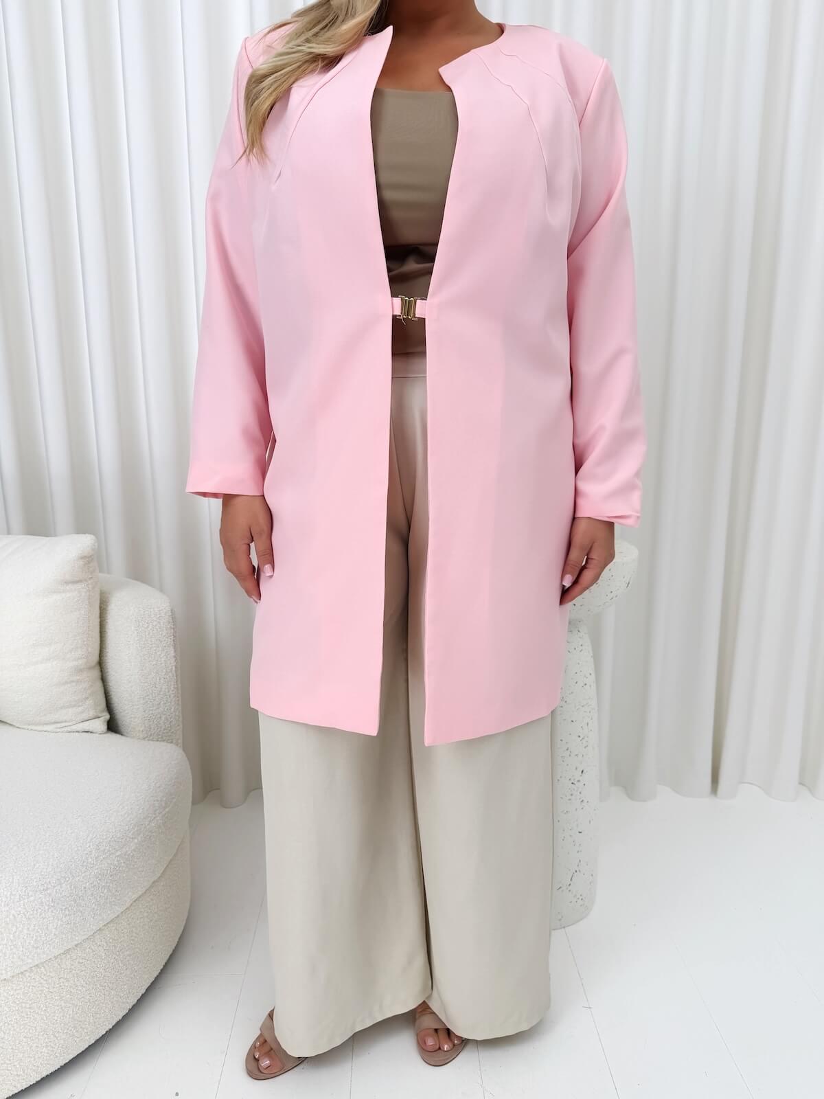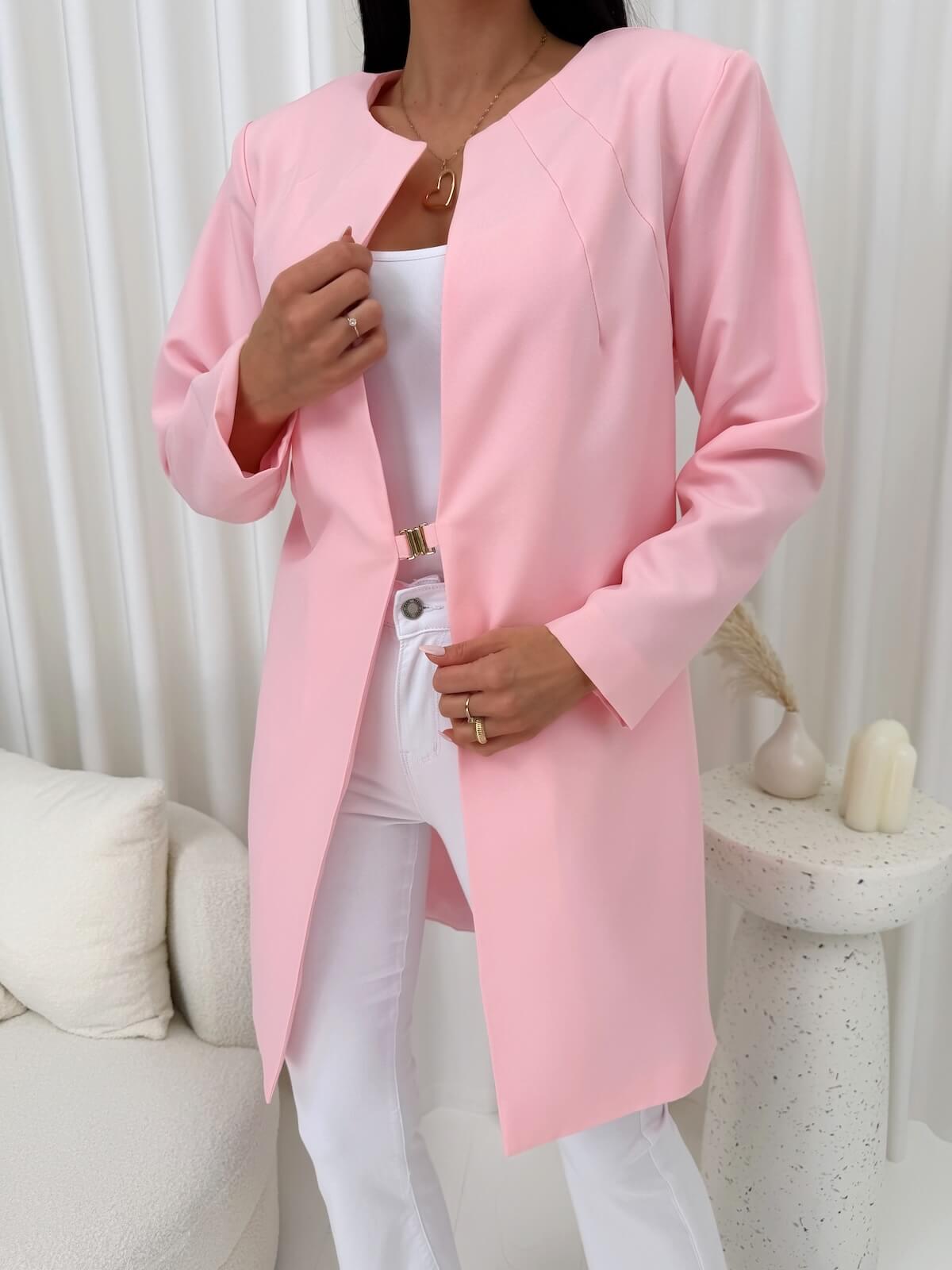 Pudrowy Długi Żakiet z Zapięciem 14674-169-G