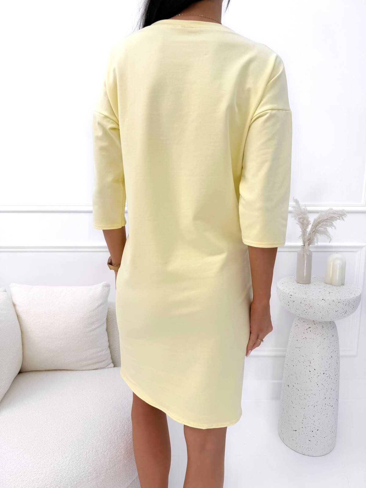 Sportowa sukienka w jednolitym kolorze to prawdziwy hit codziennych stylizacji! Prosty krój i rękawy 3/4 tworzą nowoczesny, miejski look, który sprawdza się zarówno w ruchu, jak i na luzie. Praktyczne kieszonki i delikatna naszywka dodają charakteru, a okrągły dekolt podkreśla subtelną kobiecość. Must-have na wiosnę i jesień — wygodna, stylowa i gotowa na każdy dzień!